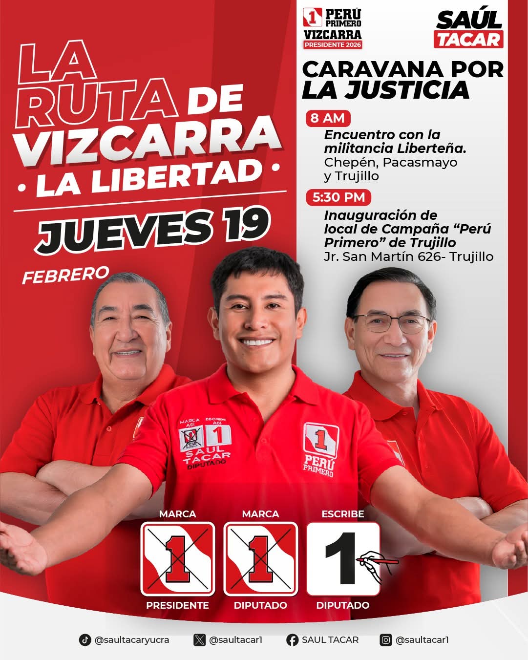 SAÚL TACAR ENCABEZA EN LA LIBERTAD LA VISITA DE MARIO VIZCARRA Y CONSOLIDA LA “RUTA CONTRA LA CORRUPCIÓN”.