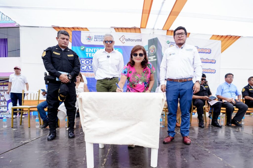 La ceremonia de firma del acta de entrega del terreno fue liderada por la gobernadora regional de La Libertad, Joana Cabrera Pimentel, y el fundador de la empresa Paltarumi, Jimmy Pflücker; ademas se contó con la presencia del general PNP Franco Moreno, el alcalde Jhon Vargas, etc. La gobernadora destacó que la obra permitirá reemplazar el antiguo local policial que funcionaba desde 1940 y que fue declarado inhabitable en 2017 debido al alto riesgo de colapso.