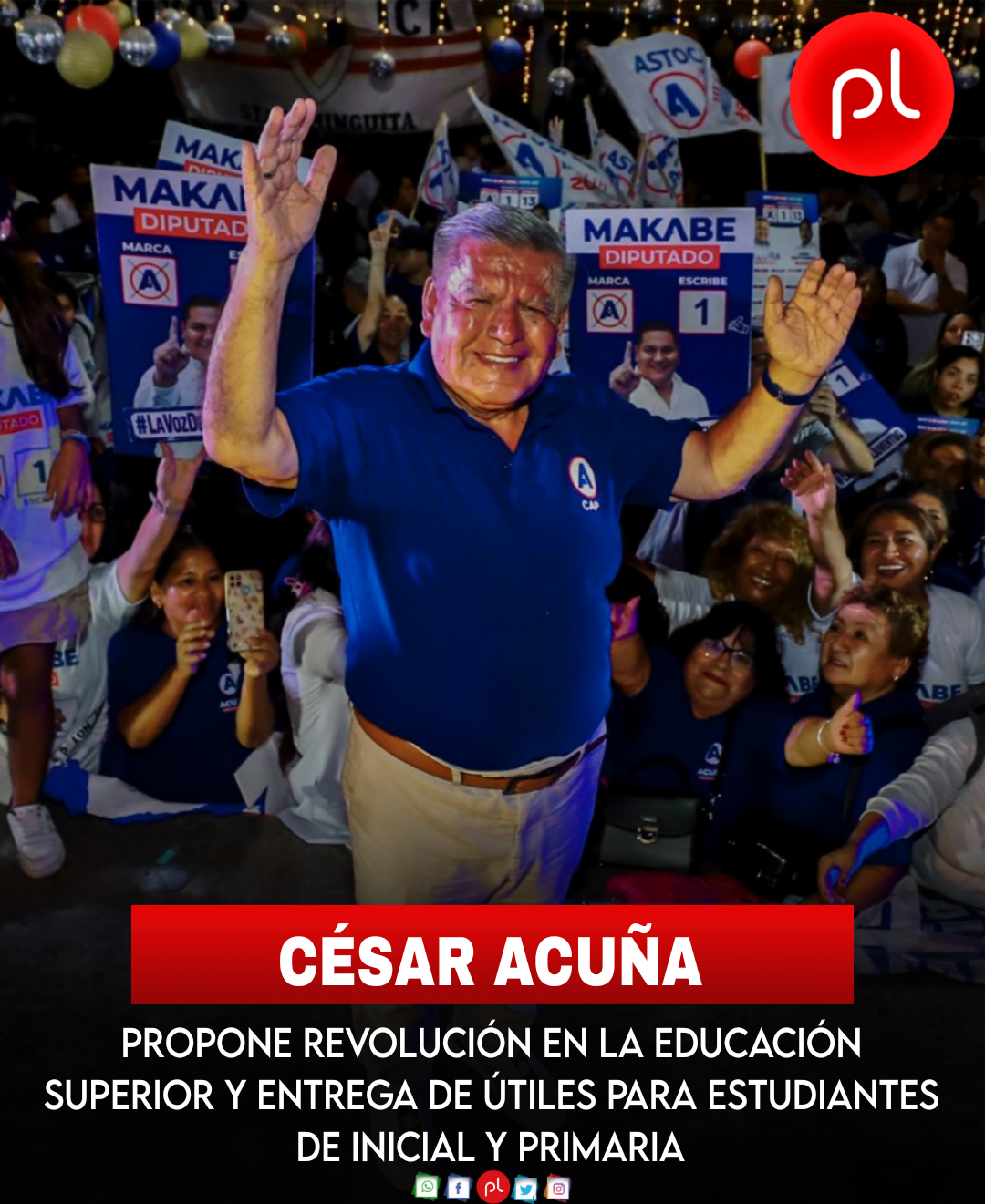 Candidato César Acuña propone revolución en la educación superior y entrega de útiles escolares para estudiantes de inicial y primaria