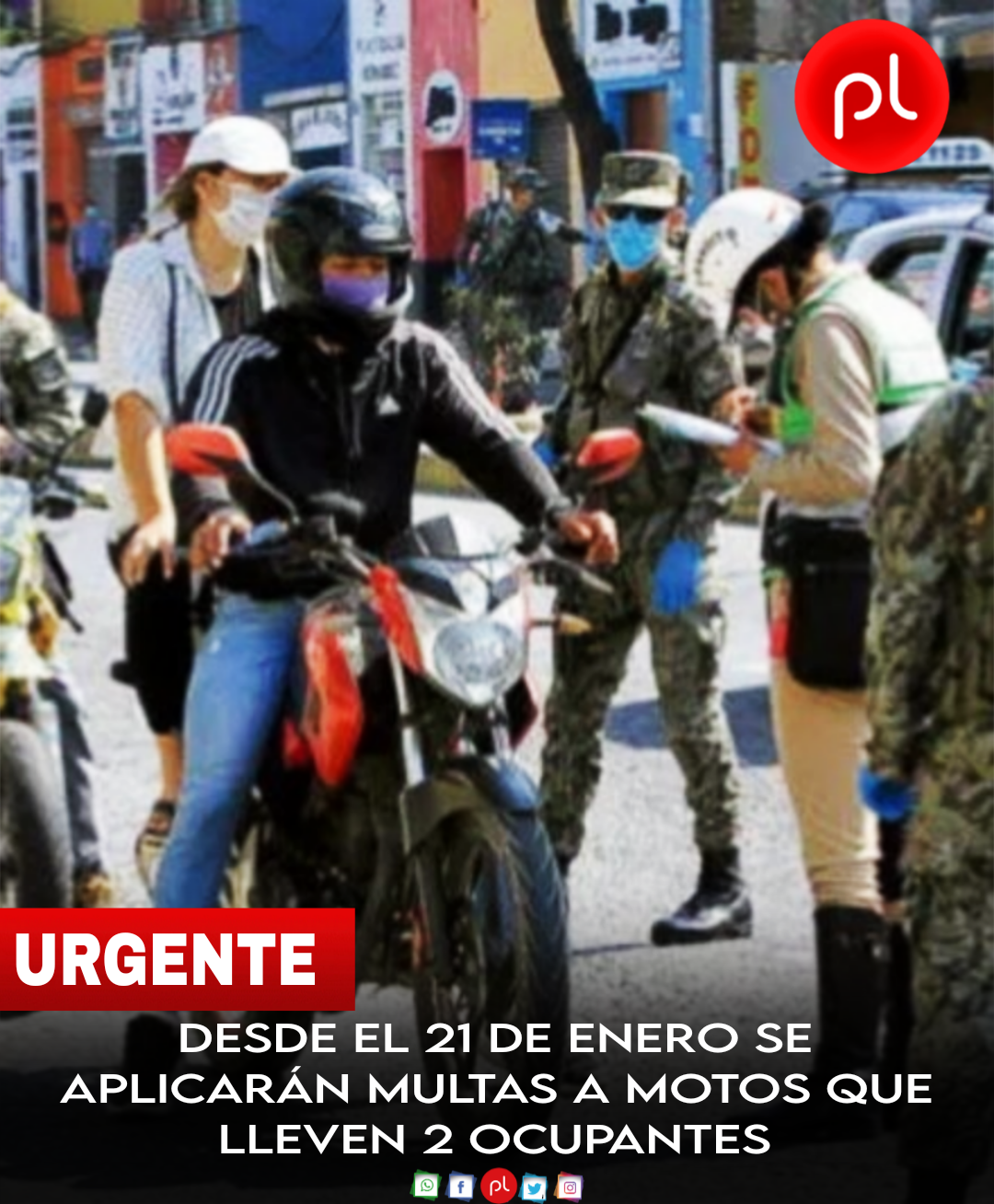 DESDE EL 21 DE ENERO SE APLICARÁN MULTAS A MOTOS QUE LLEVEN 2 OCUPANTES